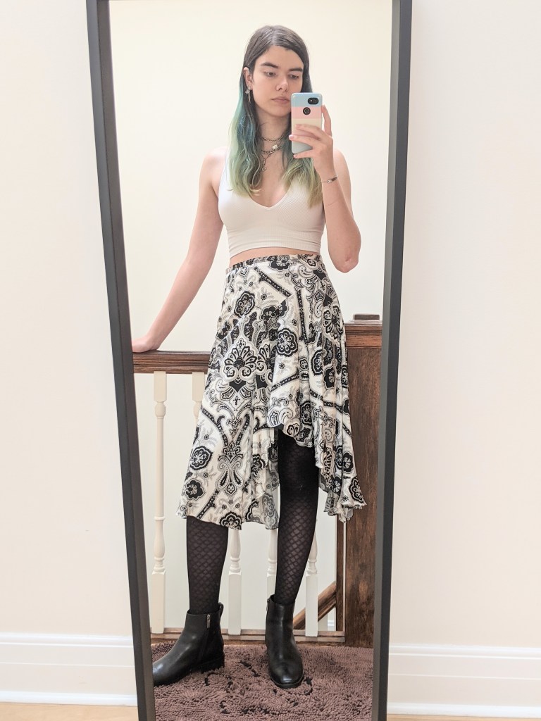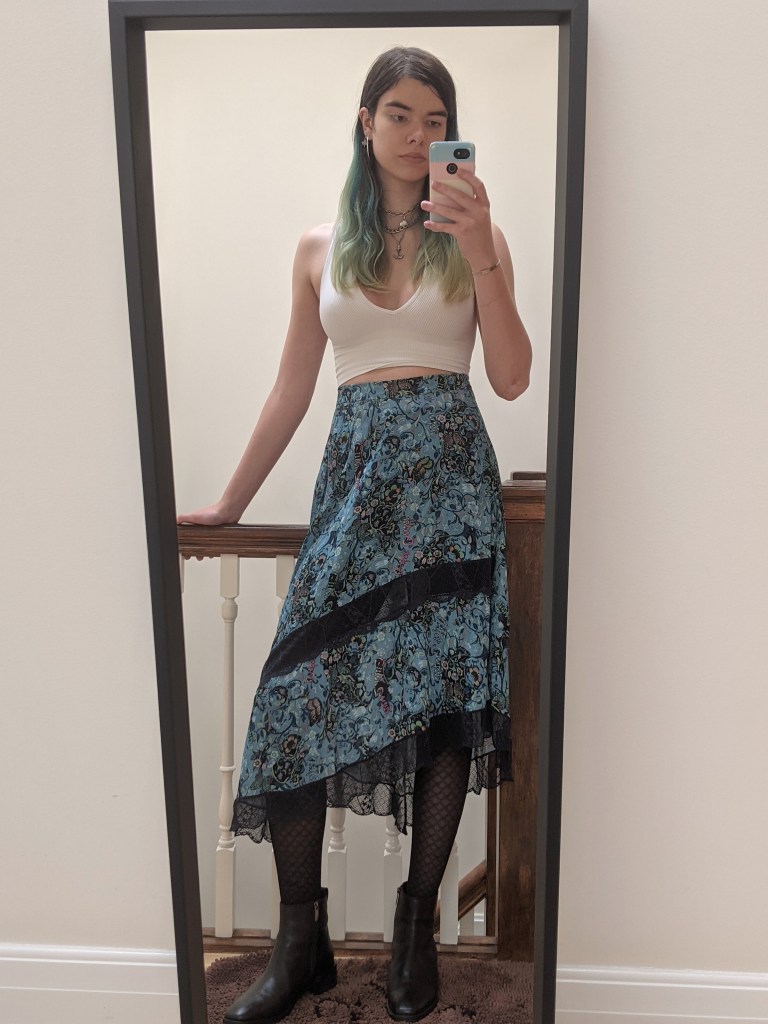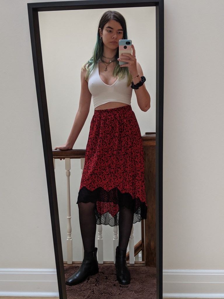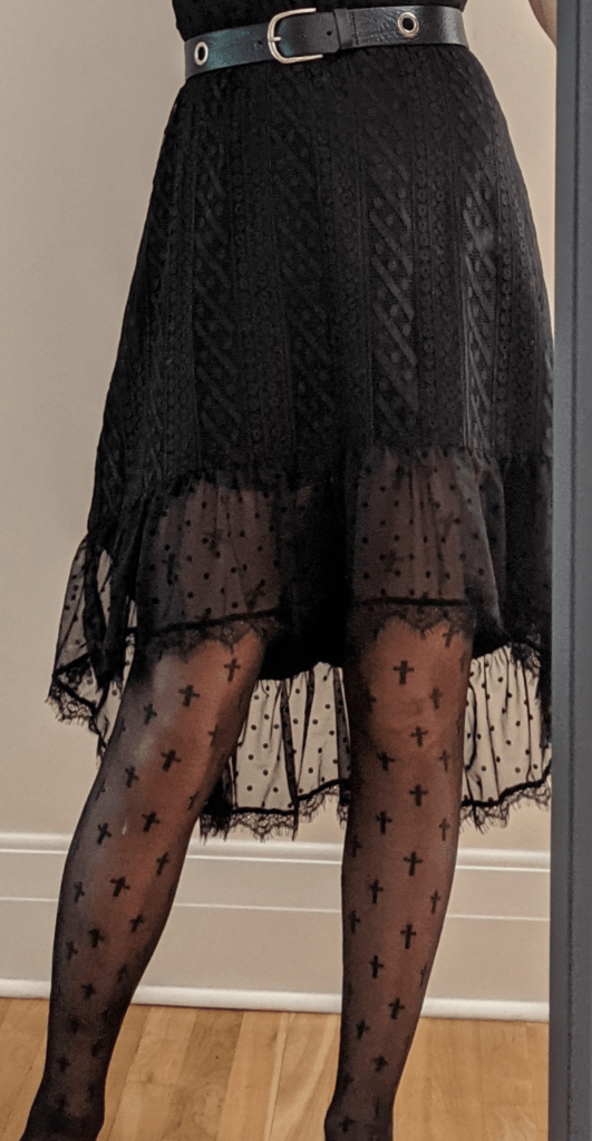 When I was but a mere child I used to be a lot more self conscious about my knees and my vitiligo in general so I would always wear tights. I don’t care if my legs don’t look perfect anymore but don’t let your skin condition or whatever it is prevent you from wearing skirts/dresses, stockings are always an option 🙂