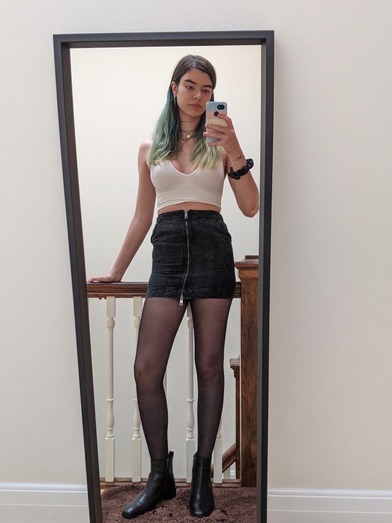 I personally only own black tights because I feel comfortable showing my skin and I don’t mind shaving my legs. If you don’t want to shave your legs then opaque stockings or just nude colored can be great for preventing the judgment you will almost certainly receive.