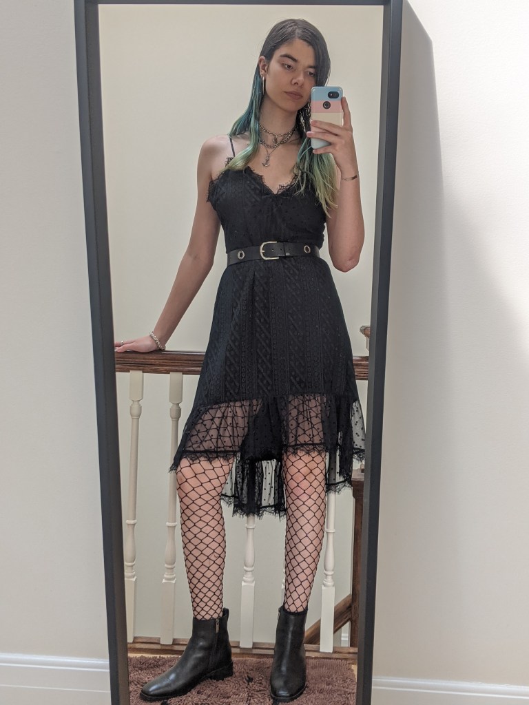 Don’t forget the different styles of stockings, like fishnets and patterns. I wouldn’t wear fishnets in the workplace because they’re a bit more on the punk side these days but they are super fun for casual outfits like this.