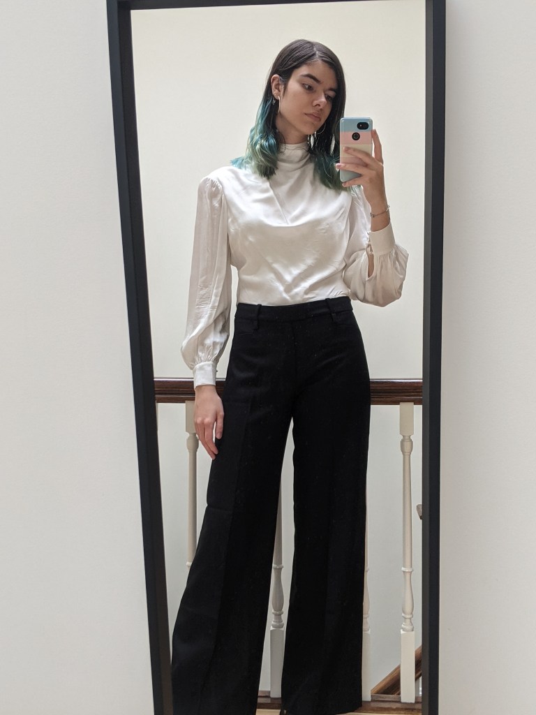 The main focus is on core versatile pieces. Nothing too revealing, nothing too loud. You should be able to wear most of your wardrobe in an office setting after you graduate. Black and white are essential colors, if you don’t have both black and white for tops and pants you will struggle a lot more.