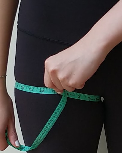 Leg Length is different from your inseam as it measures the entire length. It is easiest to do this on the floor. Pretend I am on the floor (it was too difficult to demonstrate and simultaneously take a picture on the floor). You probably won’t use this for clothing at all except when trying to get the rise of pants or to see where a skirt may land.