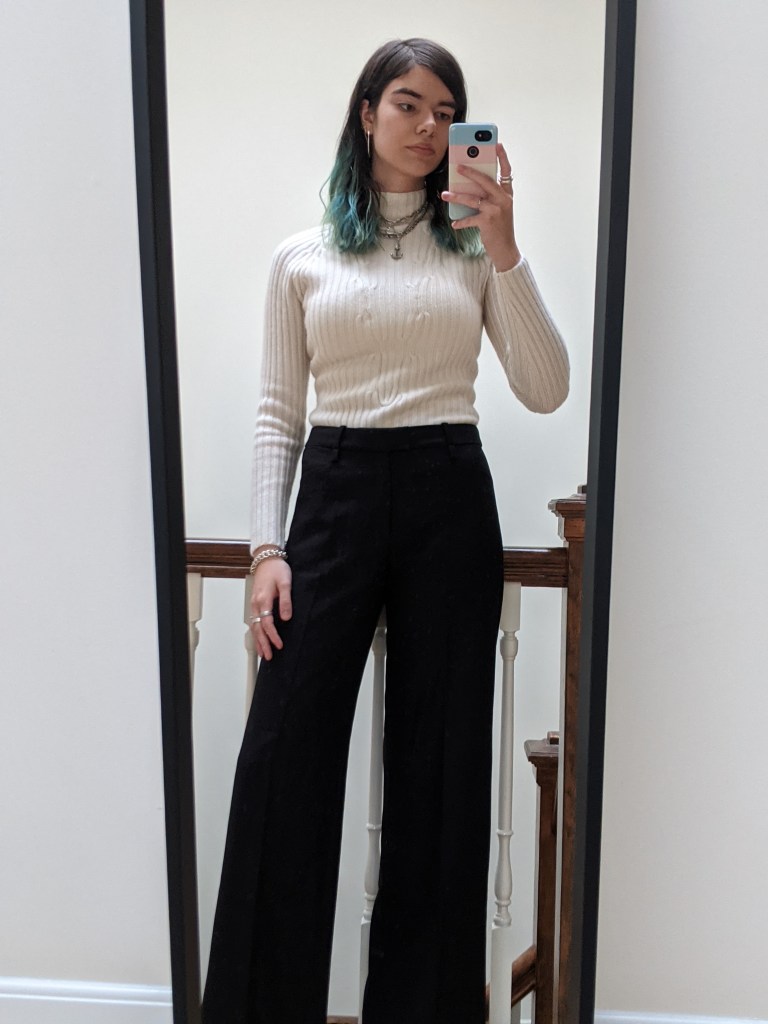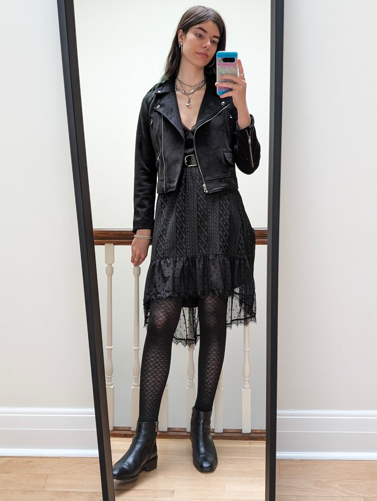 Shoes matter quite a bit because they can really change how the rest of your outfit is defined. Sneakers are going to dress down what might be an otherwise very fancy dress, and boots can elevate an otherwise plain outfit. I would almost always go with boots though as they are a much better finishing touch. Even when wearing jeans, you can see how this outfit doesn’t look quite as casual with boots compared to the sneakers.