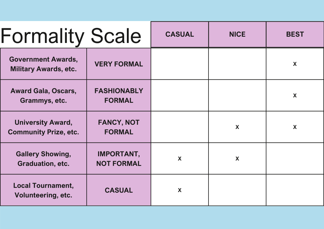 Award ceremonies are a time to celebrate you and your accomplishments. For better or for worse, you’ll often be the center of attention for at least a brief moment. During this time you are the center of attention, you should look your best! But what does ‘best’ mean? Is it the fanciest you’ll ever dress, or the best suited for the occasion? (Hint: it’s the latter).