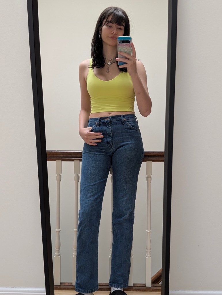 If you start wearing items that don’t go well together at all it can really be off-putting visually. Colors have different tones to match so a Neon yellow won’t be the same as a solid yellow when it comes to pairing. If we use this top as an example, we notice how the neon yellow top goes better with the brighter blue jeans.