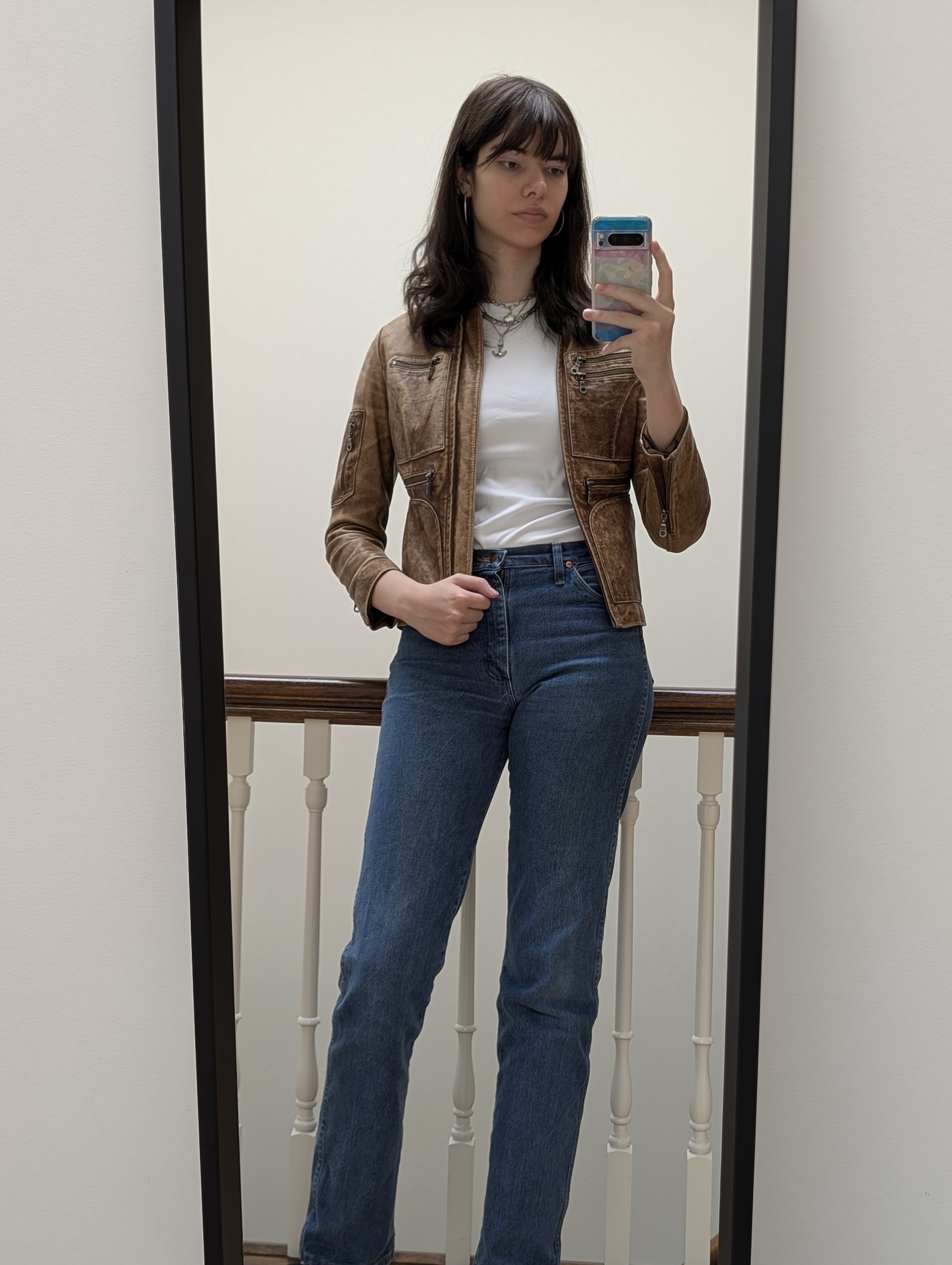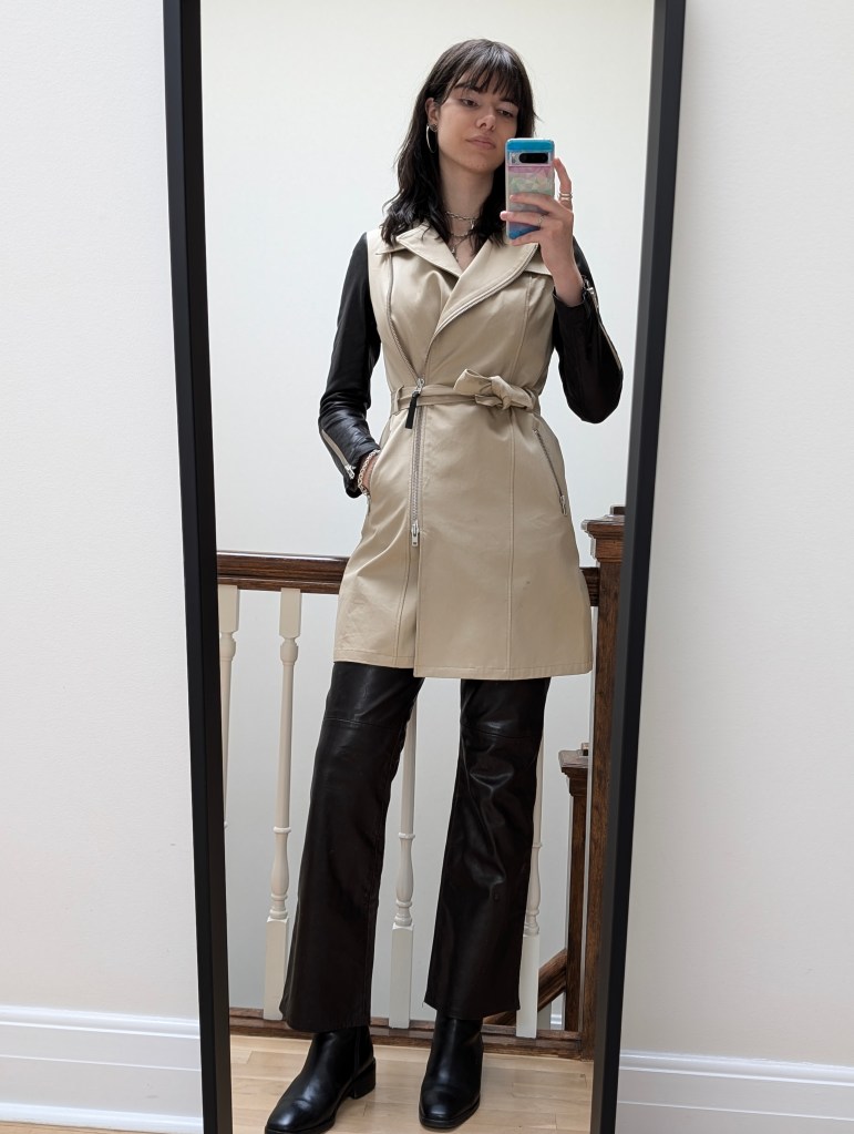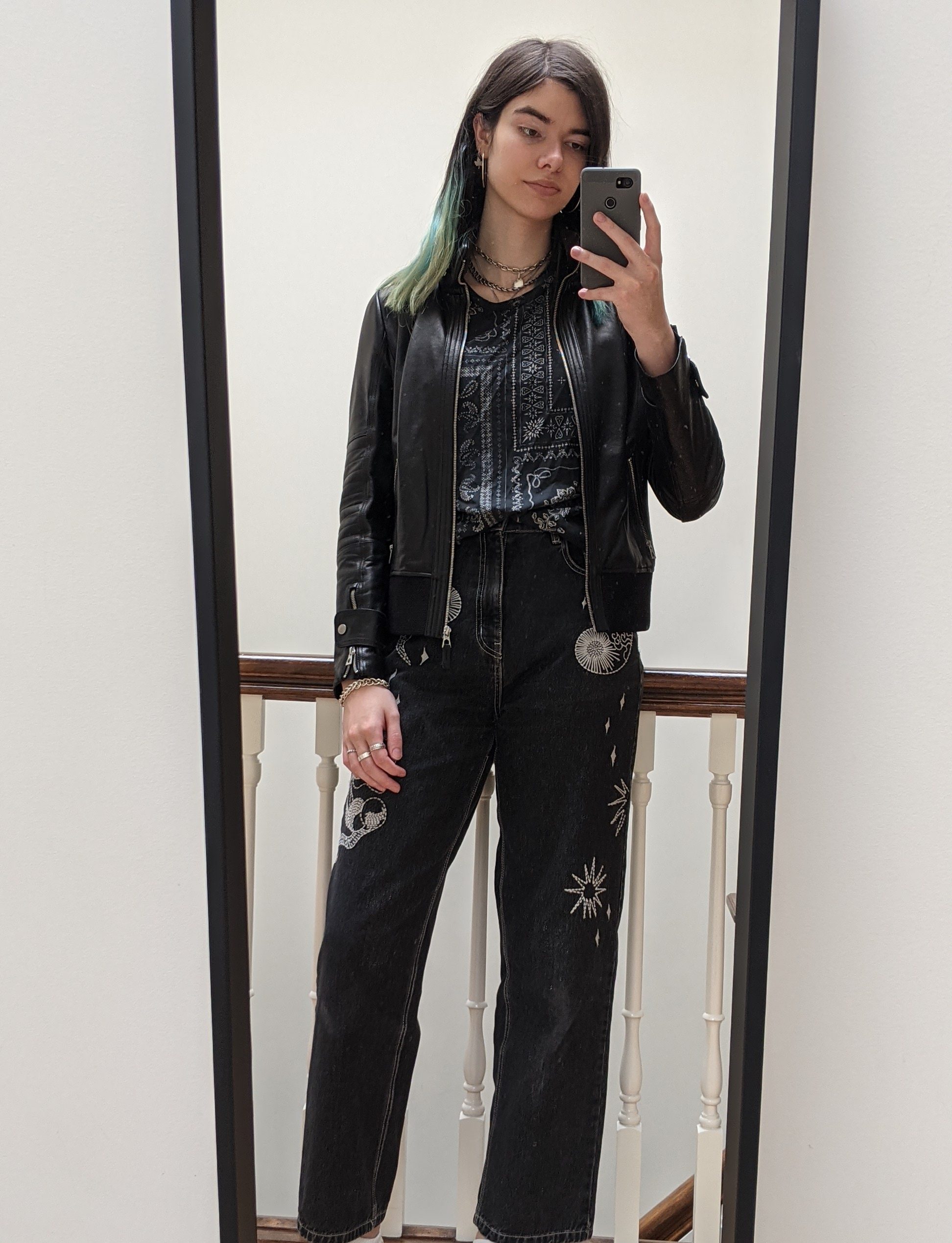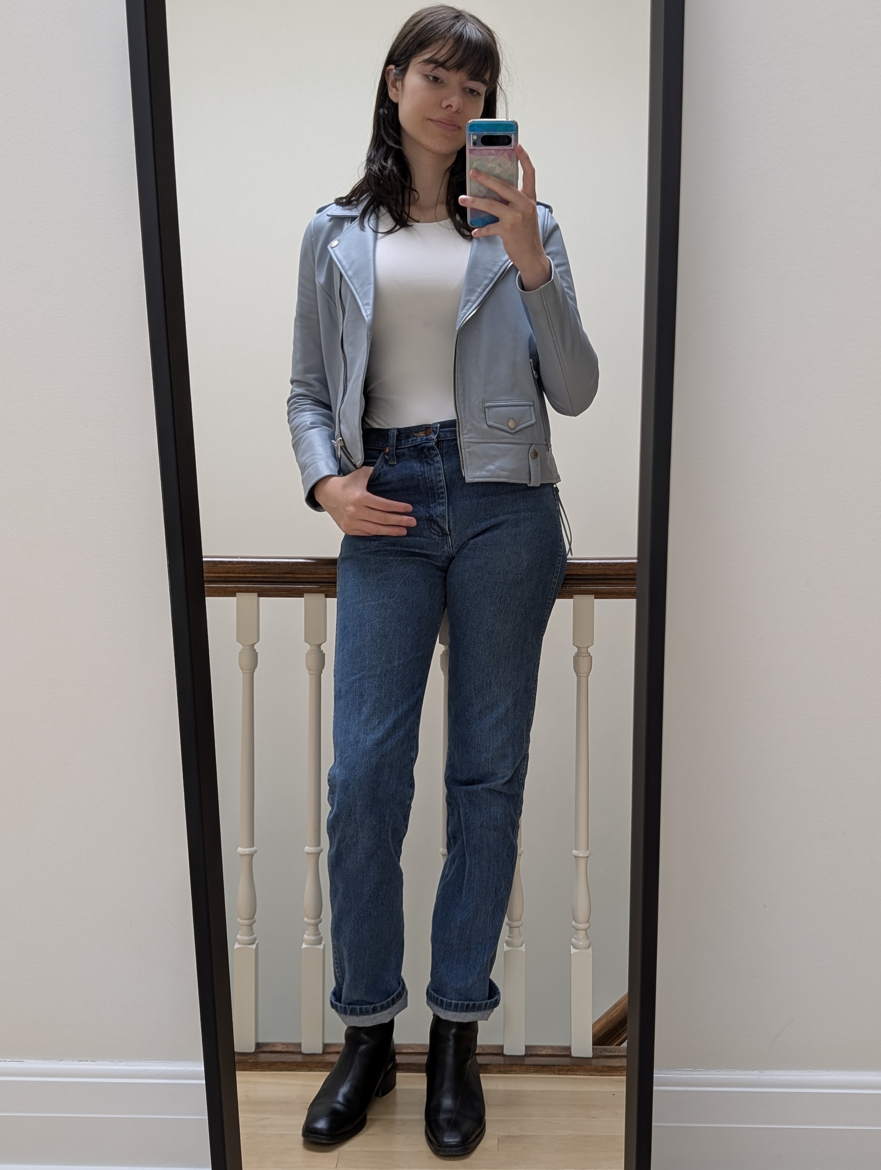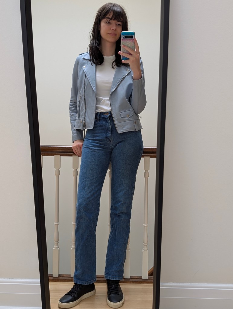 Putting on a more rugged looking jacket also changes the outfit massively to appear more masculine leaning, btu again it’s influenced by your body shape. The left is not particularly androgynous because of my chest. Shifting the scale with the jacket is what makes it more androgynous.