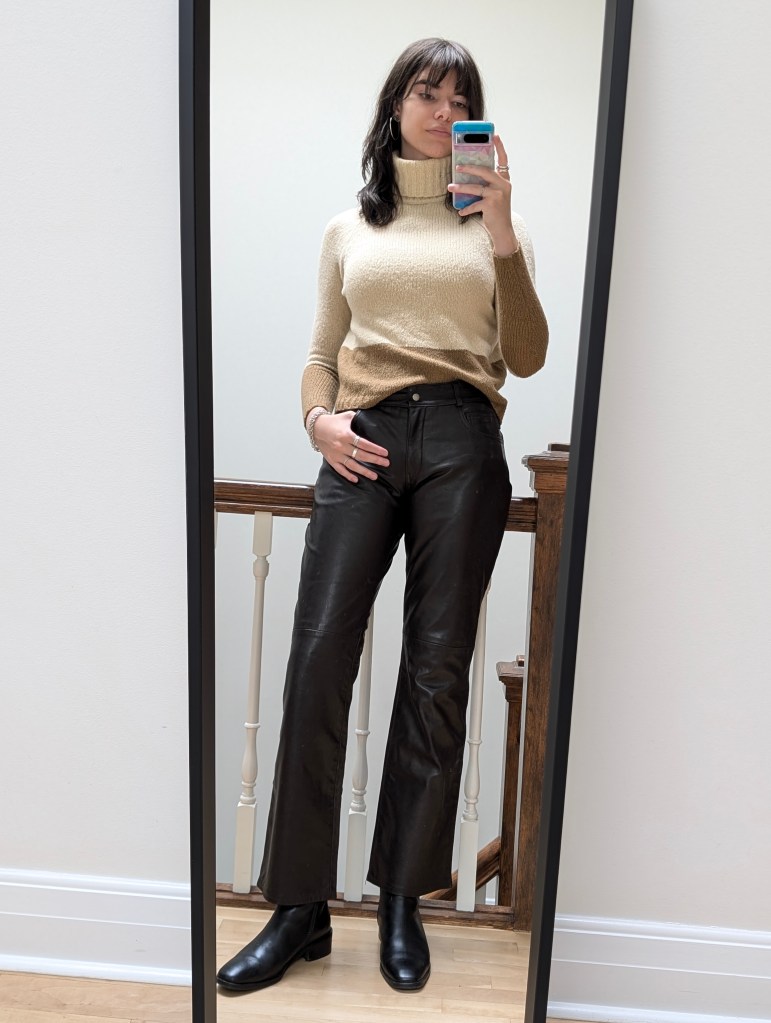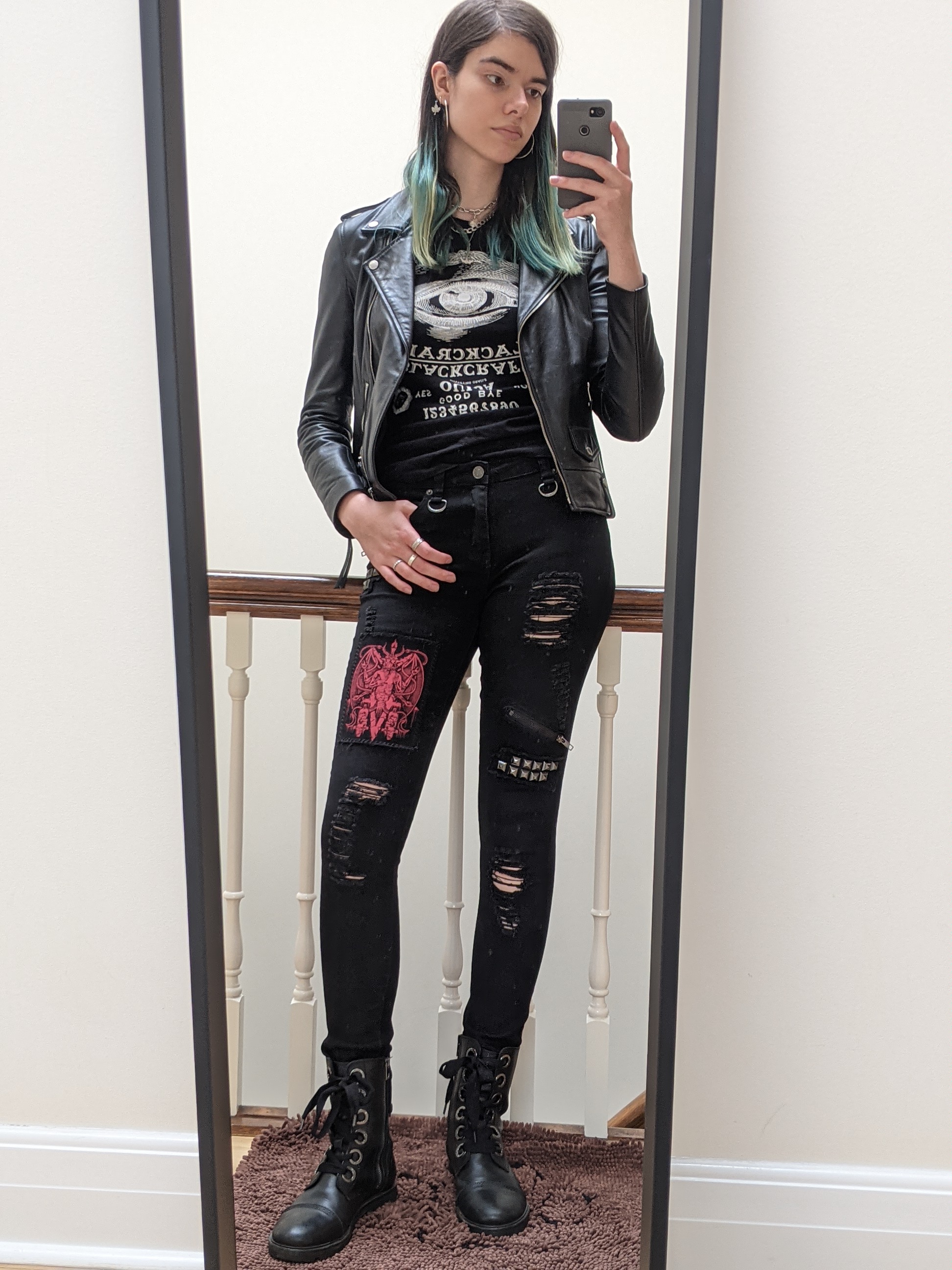 Textiles that are worn by everyone also go a long way. Leather, denim, canvas, cotton or basically any knitwear can be worn by anyone without being gendered. Because of this, try your best to incorporate those kinds of pieces. From the outfits above, (100%) of them have 1 pr more of these fabrics! It all depends on how you style them together as most cis people do just fine with their boring default gendering when wearing the exact same items. Even the choice in belts can make a difference depending on the material, buckle or other embellishments like rivets.