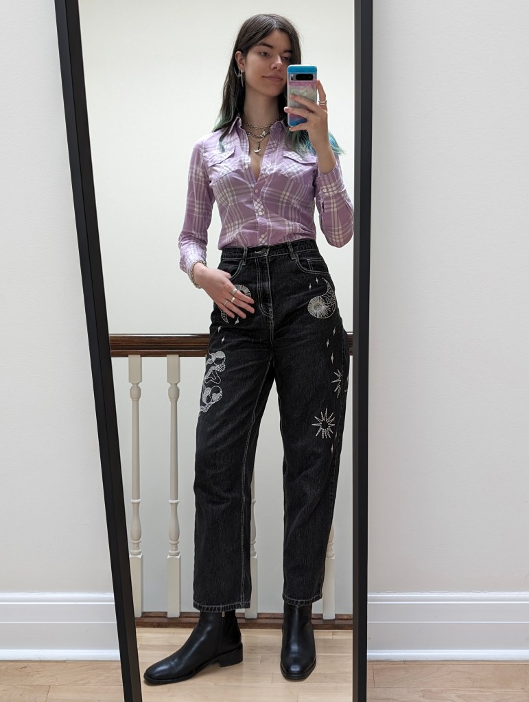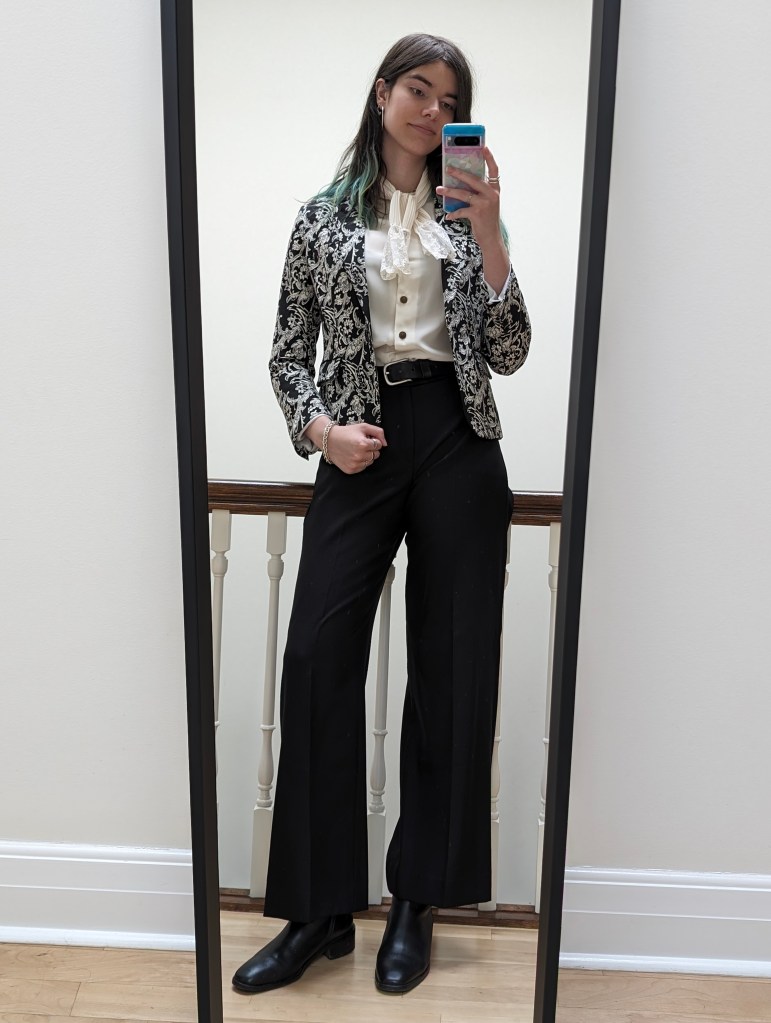 A majority masculine silhouette with feminine cuts is going to be what looks androgynous to most people. That usually means a larger silhouette for the upper body. Occasionally when wearing the following outfits, I still get misgendered and so if you think ‘wow Ms. transfemmestyle is transition goals #slayqueen’ then this could be very helpful!