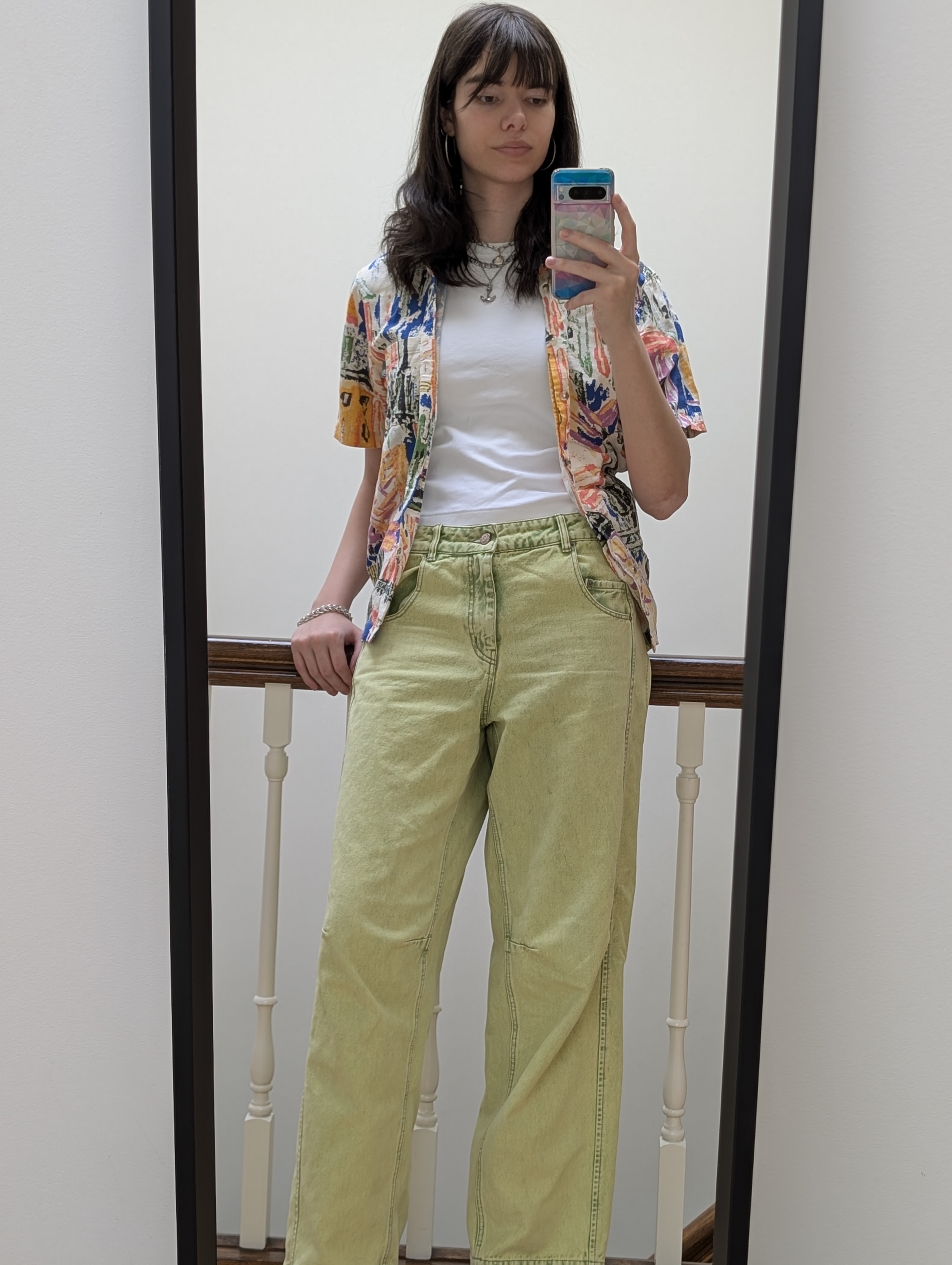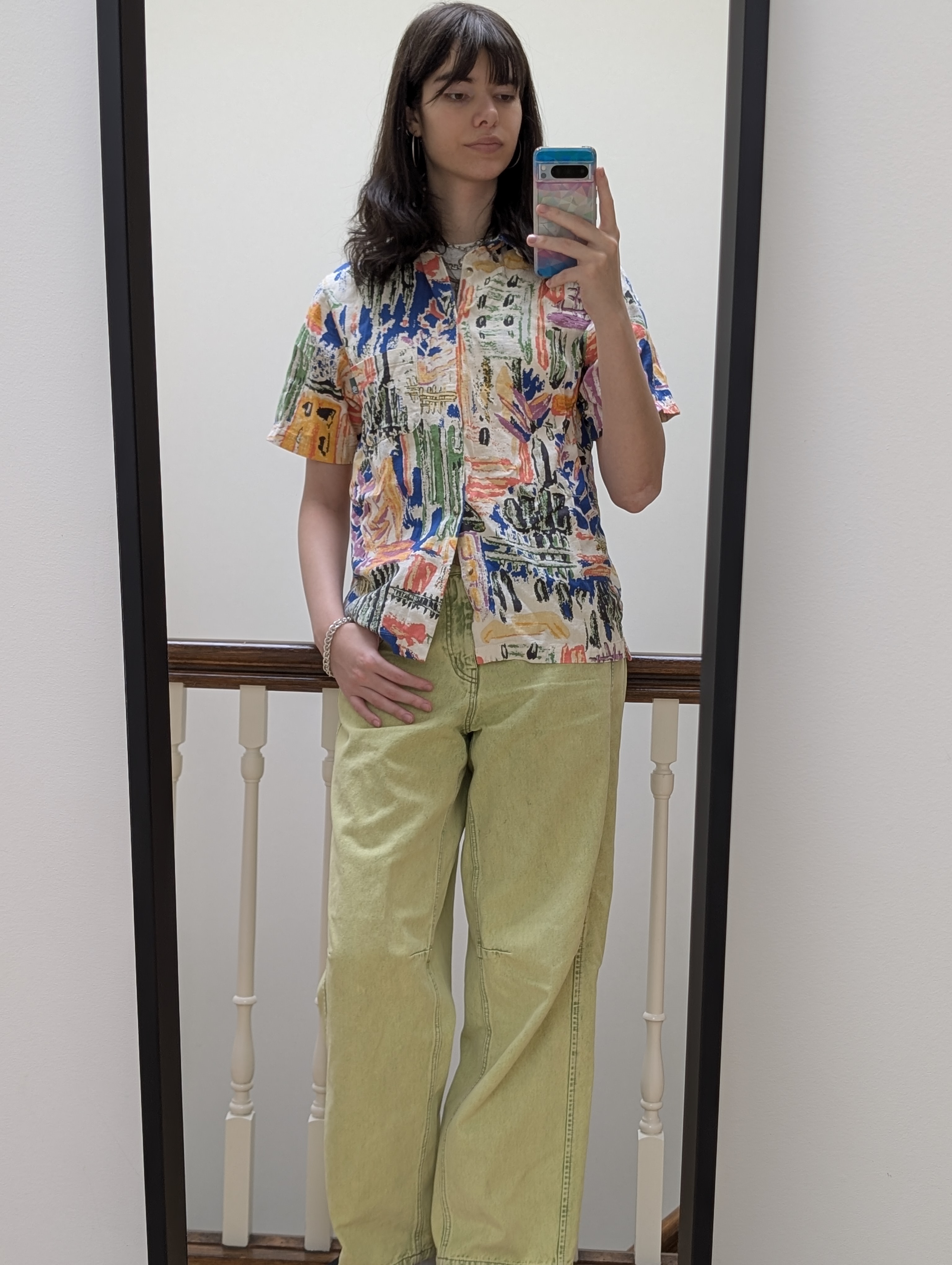 But the main thing I want to emphasize is that your body shape plays a large role in androgynous perception. Clothes can do a lot of the work but using your body shape can play in your favor. The more I show my body, the more I’m perceived as a woman, the less I show my body, people either misgender me or straight up ask (which is more annoying tbh). If you ever want to wonder how much body shape matters, I have been misgendered from behind when wearing my VERY pink jacket, and the colorful button up!