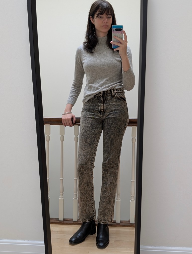 Most of the outfits have pretty simple colors or neutral colors. However, even the colorful outfits are more ‘abstract’ in terms of gender presentation because of how they obscure my body shape.