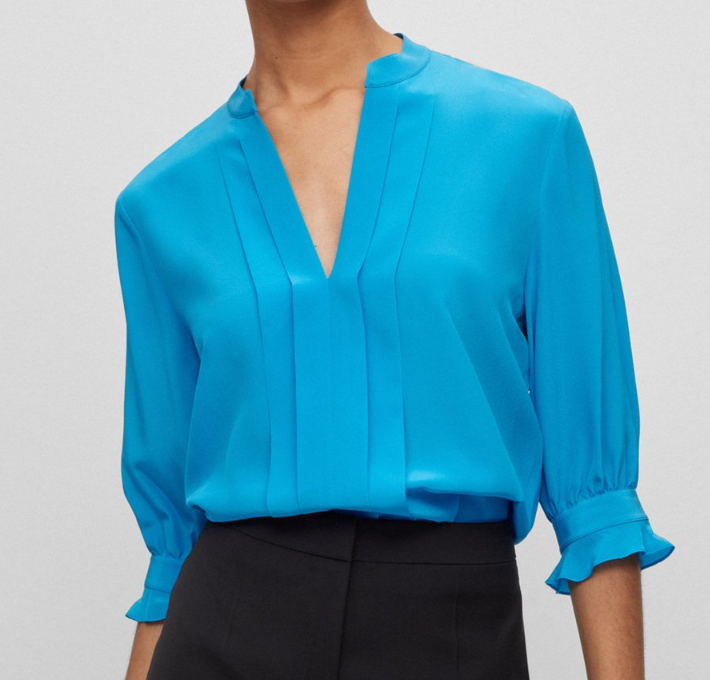 Blouson – A French looking loose blouse fitted at the bottom. This creates a flowy torso (or just the sleeves) by having the body’s fabric be ‘suspended’ and the hem hang over itself, usually with an elastic.