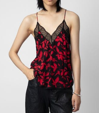 Camisole – A short and feminine top (usually with) spaghetti straps. Often has a lace trim to the low neckline and often decorated with patterns such as floral.
