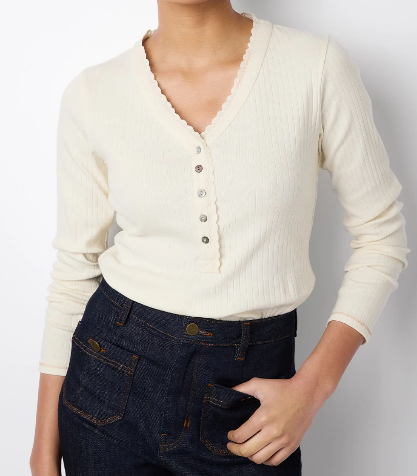 Henley – A top with a lower neckline and a few buttons going down from the neckline.